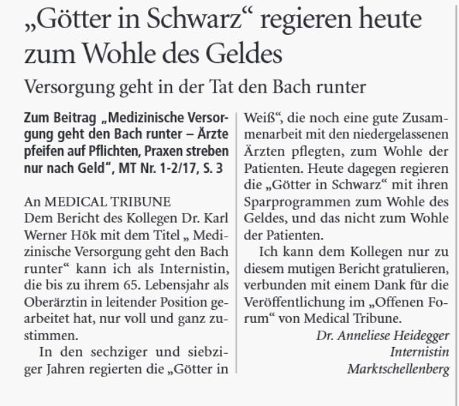 Fragt der Kollege Hök in einem Breif an die MT, JA antwortet die Kollegin Heidecker.